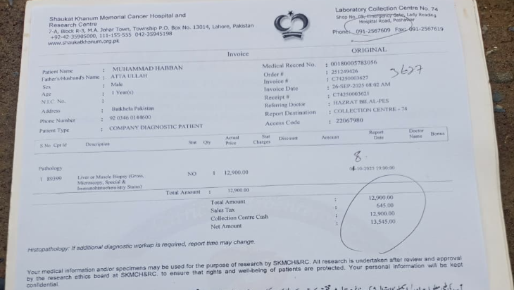 Muhammad Hibban is currently undergoing treatment at Shaukat Khanum Memorial Cancer Hospital in Peshawar.